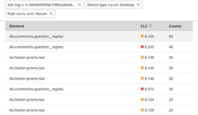 The RUM data was revealing. There were 2 components that were the largest contributors to CLS issues.