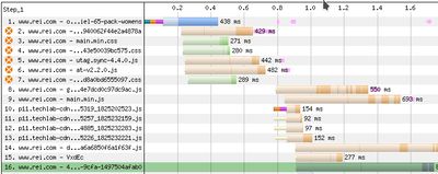 For a site like REI, the LCP image at resource 16 isn't terrible, but there is room for improvement if they were to reorder the assets in their <head> as mentioned before. This could potentially bump the image discovery up even earlier so it isn't competing for bandwidth with other assets. However, this will only help if the issues with the A/B testing are cleaned up, as the image completes downloading before the tests have finished running.
